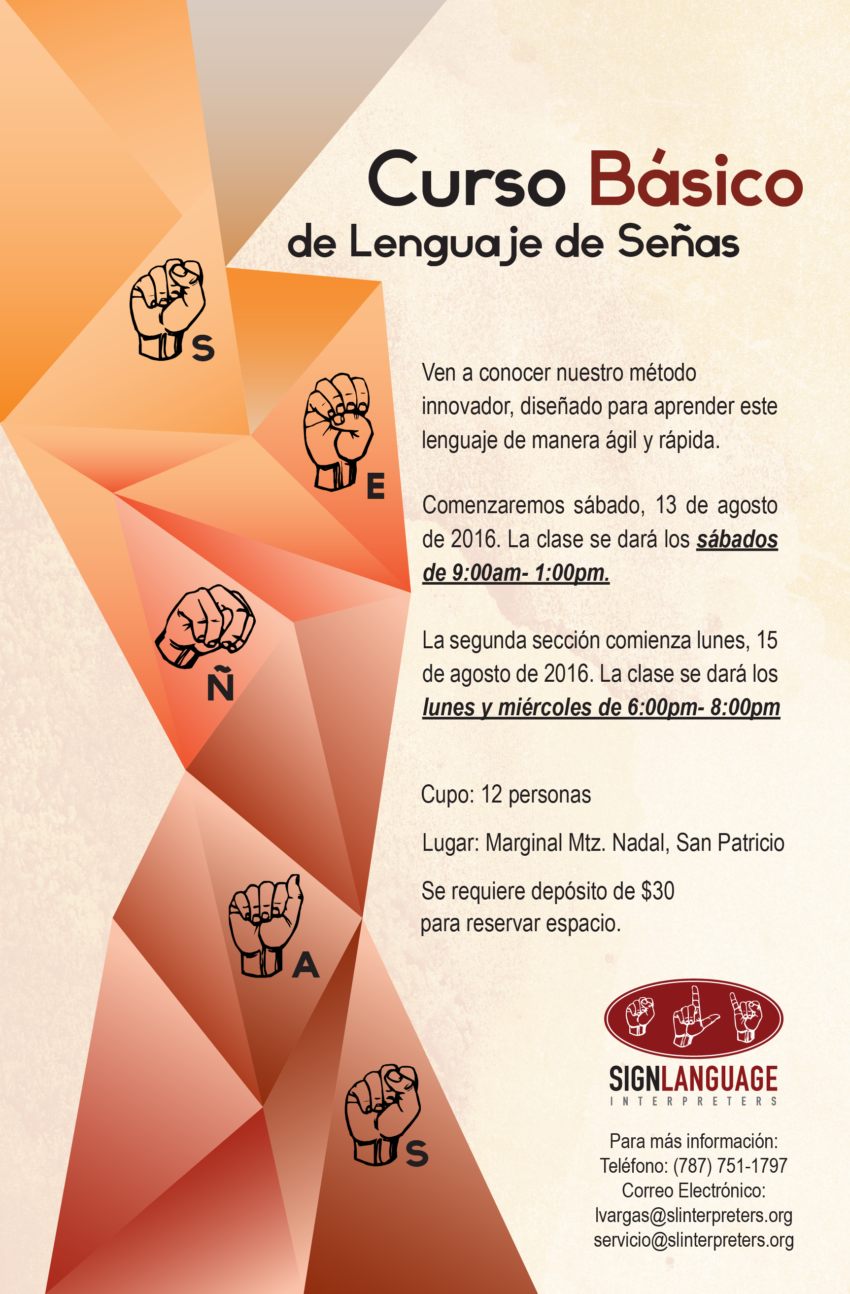 Comezamos nuestras clases de Lenguage de Señas Basico Lunes y Miercoles a partir del 15 de Agosto 2016.......